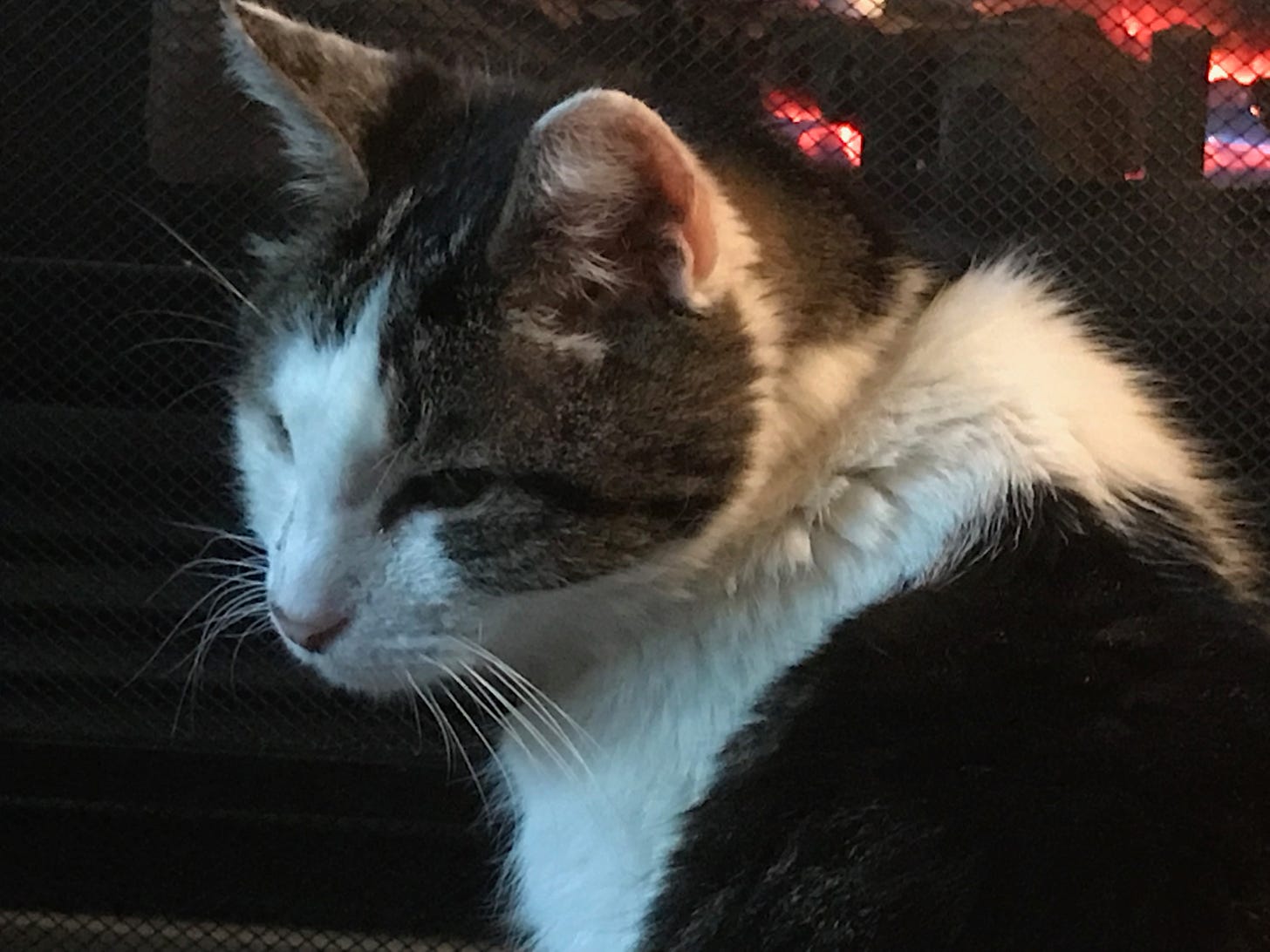Of course, she pretended she didn’t like him, and hissed at him when he approached. But over the past year she’s eaten better, gained some weight, hisses less and seems more active. The people think she appreciates having another cat around, but still won’t cuddle with him yet.