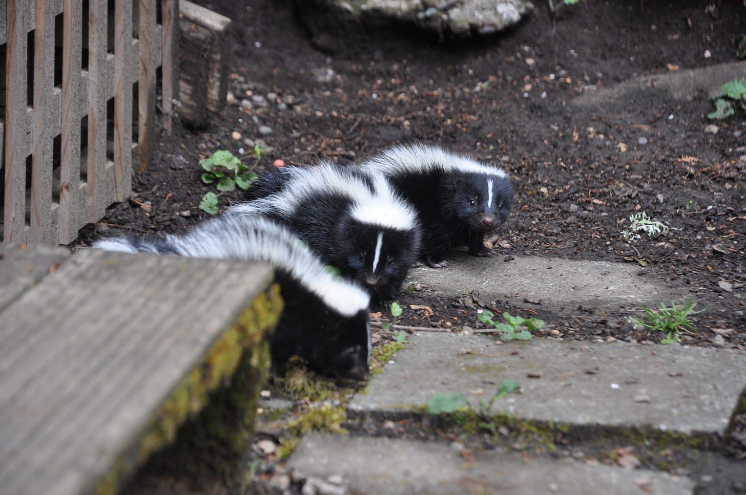 A skunk momma and five bumbling babies moved in under the shed. Over the course of a week or so, Sunny drove them out, killing one and nearly getting another. She got sprayed three times, the Rangers say.