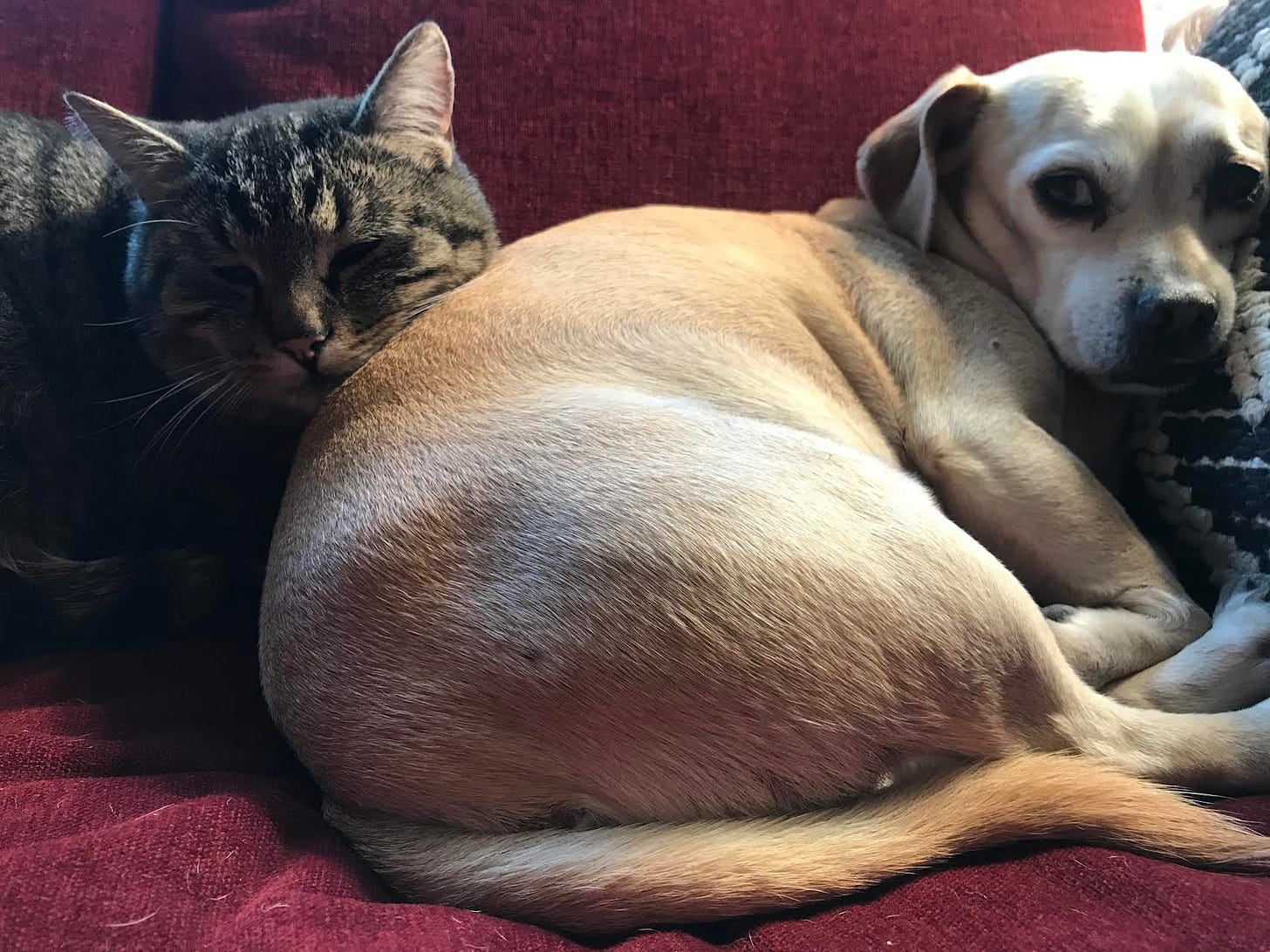 The people say Toby is friend to cats, and he is that. He and Gus hang out quite a bit, when Gus bothers to come inside.