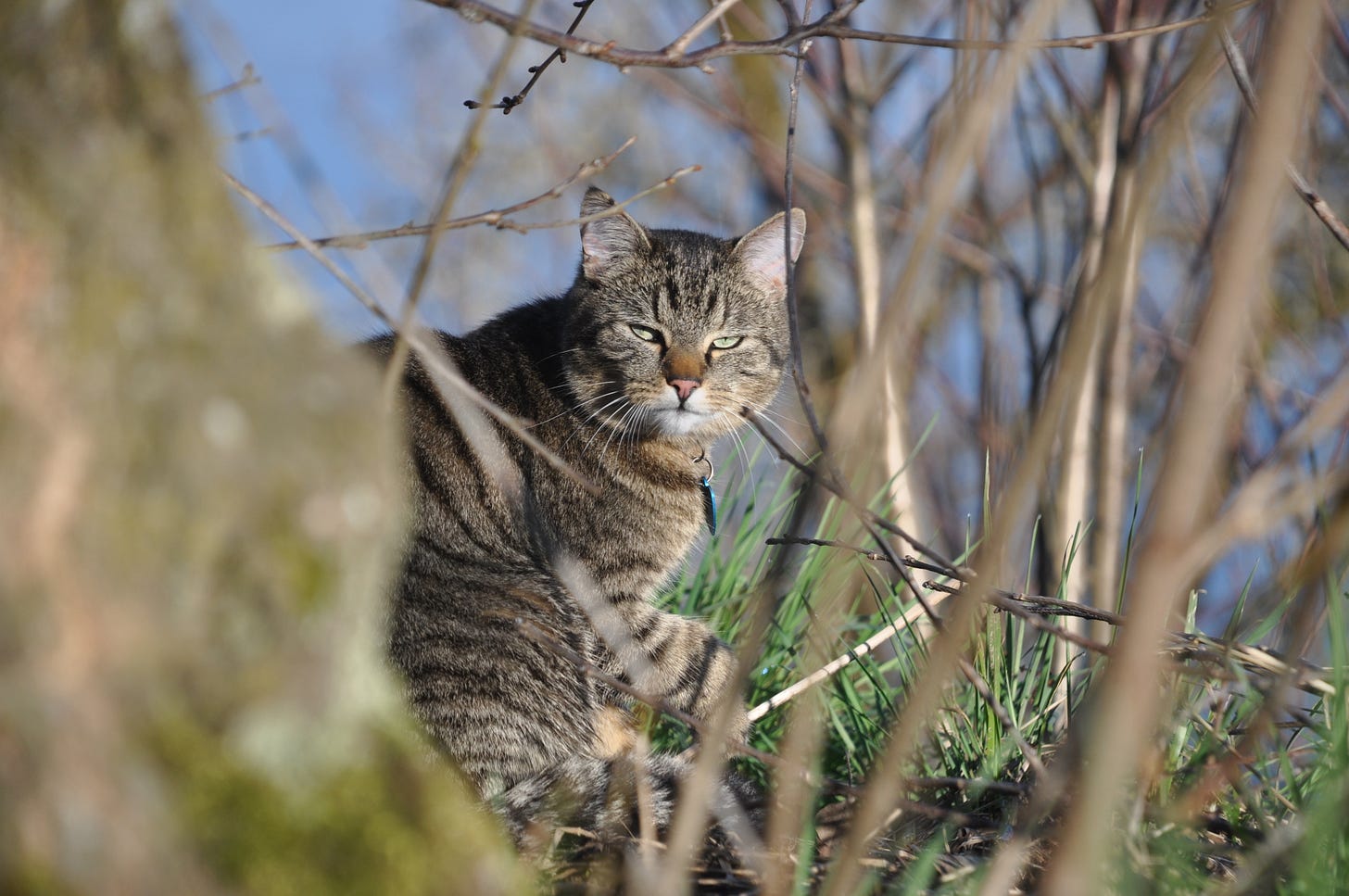 Besides that he’s cautious about cars, which is crucial. He’s stealthy and streaky quick, too, and has the athletic ability to get away from coyotes if he ever has to. He can be up a tree or even a utility pole in seconds flat. He vaults up trees just to show off, sometimes, and leaps to swipe at crows midair if they dare swoop him.
