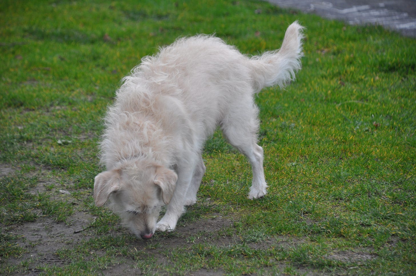 But the Rangers say Sunny’s all business out on Poop Patrol. She’s still out front, nose down and tail up as she trots confidently on the sidewalks and on the patrol path, the grass and mud trail that runs parallel to the street and looks down on Oaks Bottom Wildlife Refuge. The man does some of her looking for her; he’ll tell her to wait if he thinks she may not know something’s there, like a car coming or a step down, or a branch in the way. Wait, Sunny, and she listens.